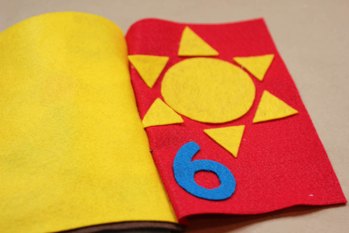In honor of Earth Day, I made my boys a little felt counting book. The pictures on each page relate to an element of our earth (plants, water, animals, land, sun). And in every picture there is something to count (more on that below). Each page is half sheet of felt and all the pictures I cut out freehand. The numbers I traced and cut. I glued the pieces down with a hot glue gun and bound the pages together with a piece of yarn.